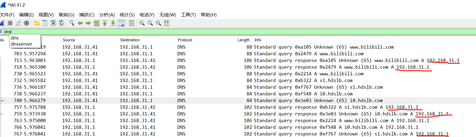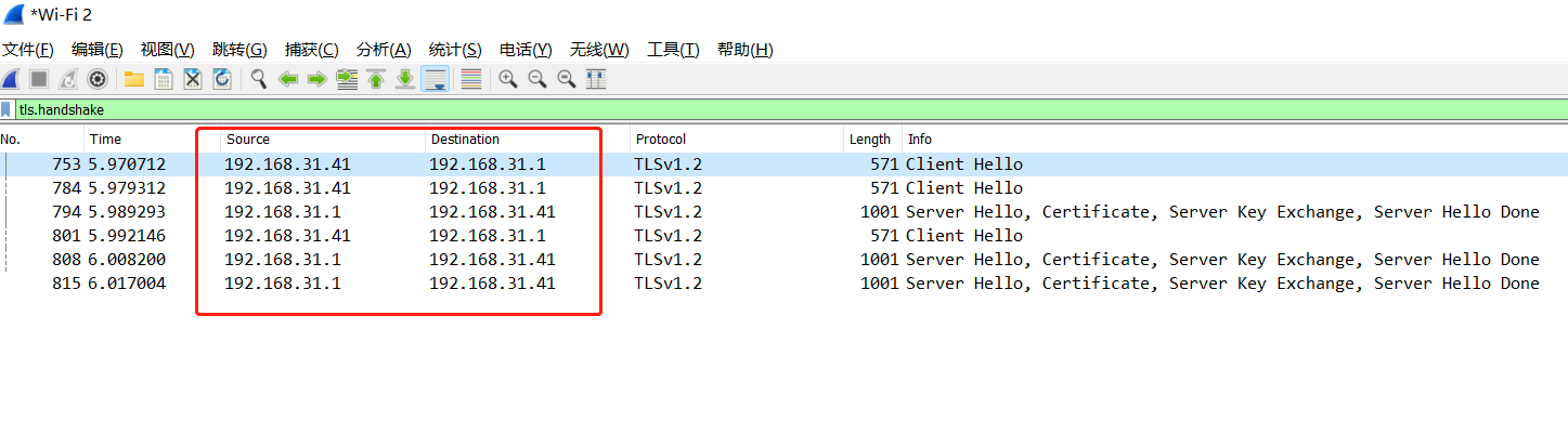 有不少握手请求向小米路由器网关192.168.31.1发送,而不是向外部网站发送。这大概就能解释为什么证书对不上了。访问b站的时候,浏览器先进行tls握手,然而这个握手请求没有发给b站的公网ip,而是发给了路由器,路由器返回自己的证书,名字与b站域名对不上,所以就出错了。