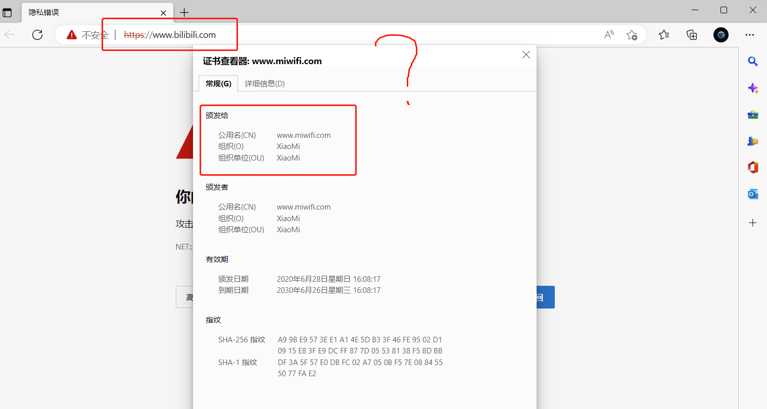 嗯??怎么b站证书变成了miwifi的证书?